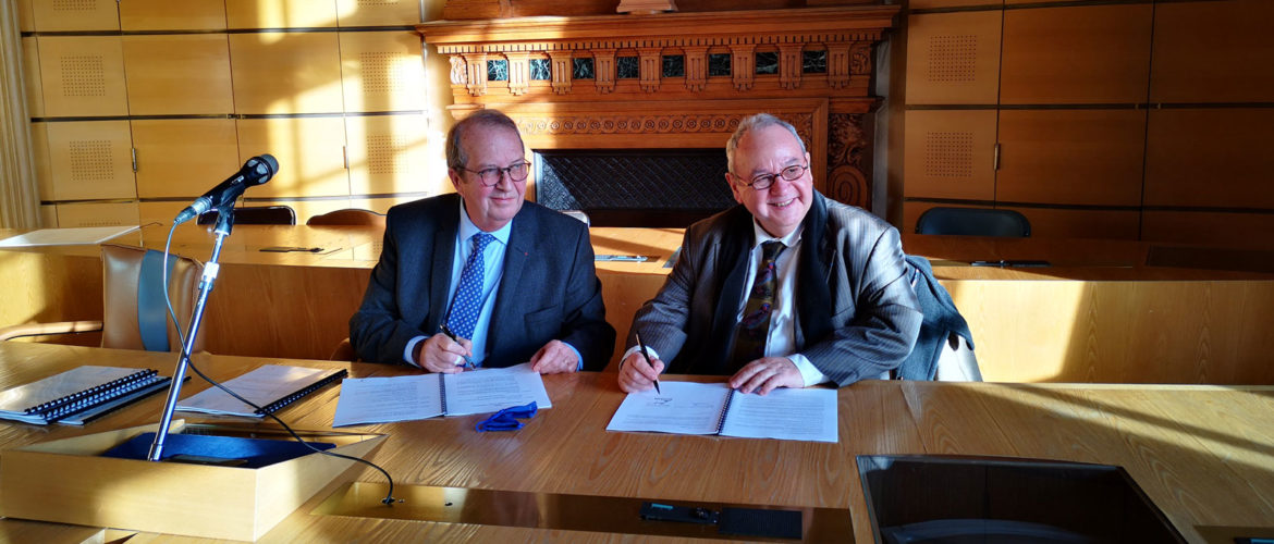Alain Girard, Président de l’Entraide Universitaire, et Christian Dupuy, Maire de Suresnes (Hauts-de-Seine), ont signé ce mardi 18 décembre les traités de fusion-absorption des associations du CMPP et de l’EMPRO de Suresnes. Cette signature intervient après la validation de ces traités par les Assemblées générales extraordinaires de l’Entraide Universitaire et des associations de gestion des deux établissements.