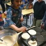 Cette fois ci, après avoir lu la recette en classe, les jeunes de l’IME ont réalisé des crêpes et ont invité les élèves de la classe de CE1 à venir à l’IME.
