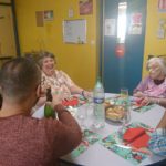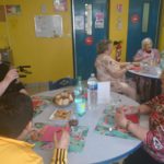 Au mois de décembre, des jeunes de l’IMP sont allés à la maison de retraite Korian à Sarcelles pour partager avec des personnes âgées un moment autour de la fabrication d’objets mais aussi pour partager un goûter de Noël. Cette fois-ci, au mois de mars 2019, ce sont les personnes âgées qui sont venues à l’IME Henri Wallon pour déjeuner avec les jeunes de l’IMP, autour d’un repas préparé par un groupe de l’IMPRO et leur éducatrice technique. Ils ont été accueillis par les plus grands comme dans un restaurant. Les jeunes ont préparé en classe les menus qui ornaient les tables. Ils ont été très fiers de montrer leur travail aux personnes âgées. Tout le monde était content de se retrouver. Ce fut un moment très convivial et apprécié par les plus petits et les plus grands.