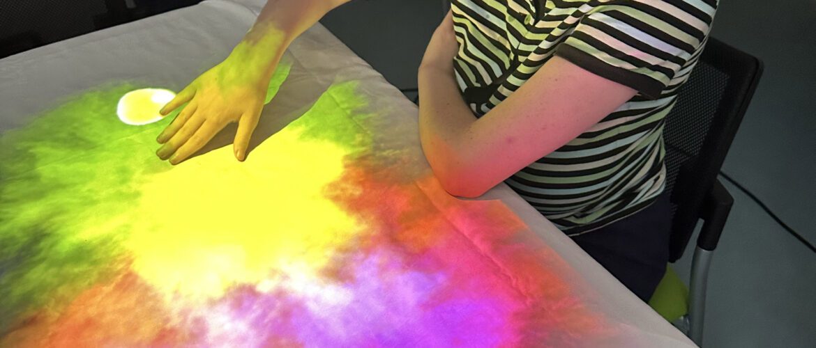 Grâce à l’Entraide Union, via le DAPID qui a financé 50% de l’investissementLe prix de la Tovertafel est de 12 000 € (9 000 € le système et 3 000 € la suite logicielle), la MAS Lucie Nouet s’est dotée en juillet 2024 de la « Tovertafel », ou « Table Magique » une innovation technologique proposée par MJ Innov. Par le biais de capteurs de mouvements et d’une intelligence artificielle, la Tovertafel projette des jeux interactifs sur une surface plane que ce soit une table ou le sol.