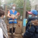 La propriétaire de la ferme nous présente ses animaux. Elle organise des ateliers sensoriels : les jeunes y caressent les animaux installés sur une table et une vraie rencontre se crée. Des bacs sensoriels sont également à leur disposition : plumes, laines, graines…
