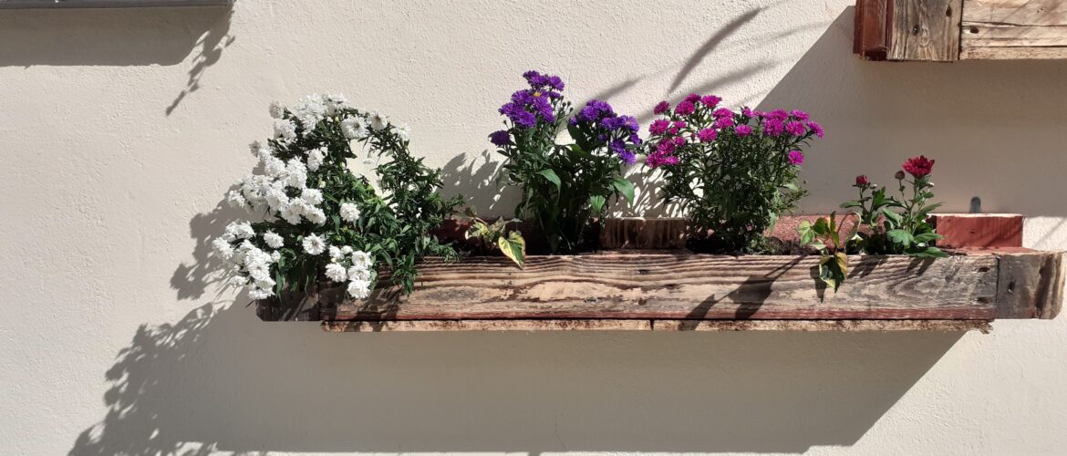 Cette proposition, créatrice de motivation, a été l’hormone idéale pour faire germer encore une fois la créativité de l’atelier Espaces Verts. L’idée initiale a conduit à réutiliser des palettes en bois récupérées pour créer des jardinières particulières et atypiques.