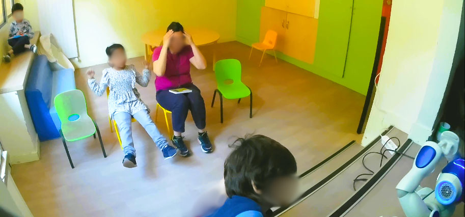 Il vise à encourager l’interaction entre des enfants présentant des troubles du spectre de l’autisme (TSA) et un robot humanoïde nommé NAO. Mesurant 58 cm de hauteur, ce robot est spécialement adapté aux jeunes enfants en raison de sa taille réduite et de son aspect ludique, ce qui en fait le choix privilégié pour l’interaction avec les enfants atteints de TSA. Ses comportements seront téléopérés en temps réel par une psychologue.
