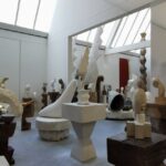 C’est une pièce dans laquelle a été reconstitué l’atelier de Constantin Brancusi tel qu’il était dans les années 20. Avant son décès, il a légué au Centre Pompidou toutes ses œuvres à conditions que son atelier soit restitué tel quel. On peut y voir son lieu de vie, son lit, ses outils, son lieu de stockage, ses photographies, son appareil photo, ainsi que ses sculptures terminées qu’il mettait en scène comme dans un théâtre.
