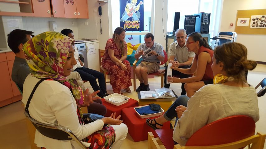 Ce vendredi 5 juillet, c’était l’occasion pour les familles de se retrouver, de discuter avec les thérapeutes, et, grâce à quatre ateliers, d’imaginer l’univers sensitif de leurs enfants.