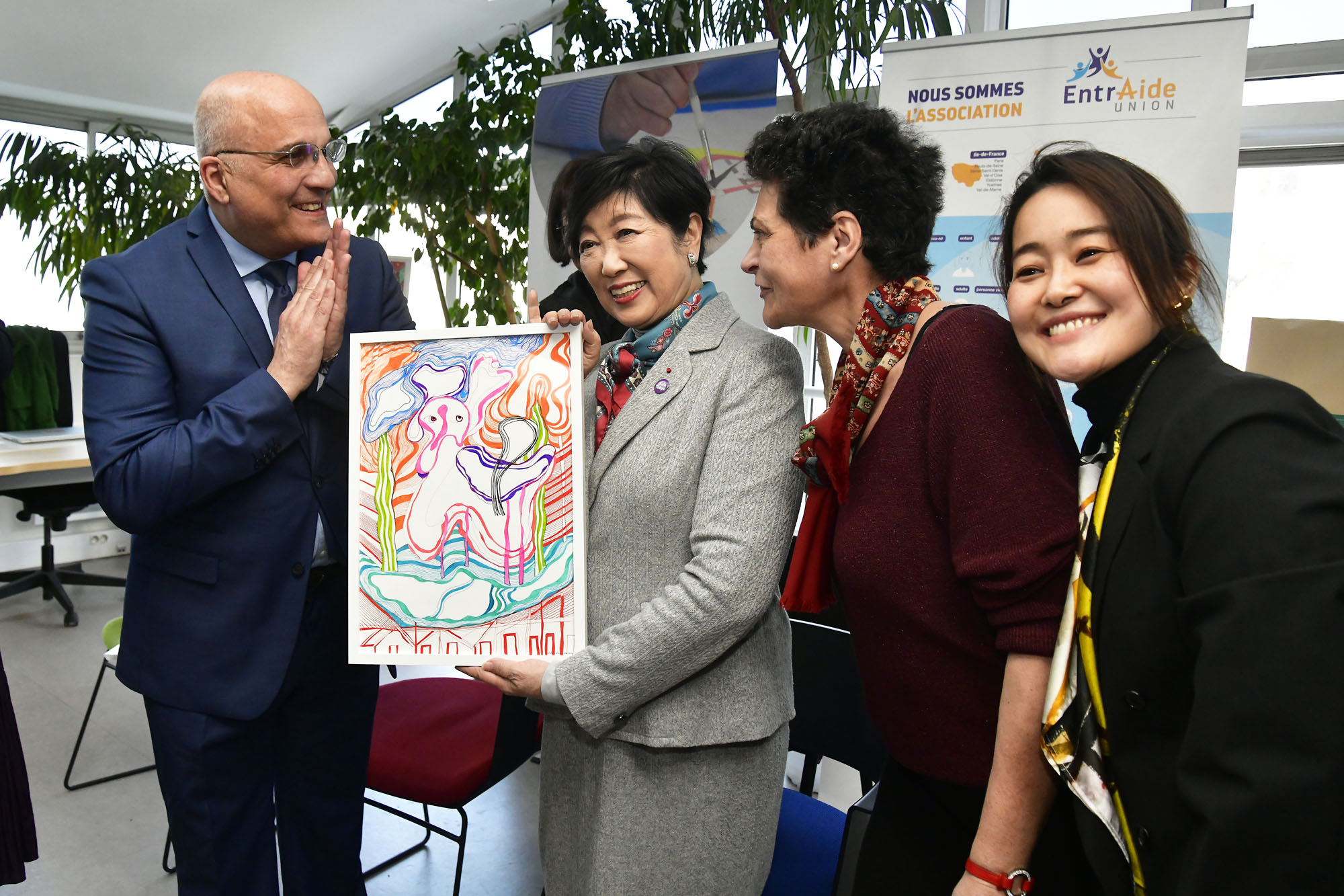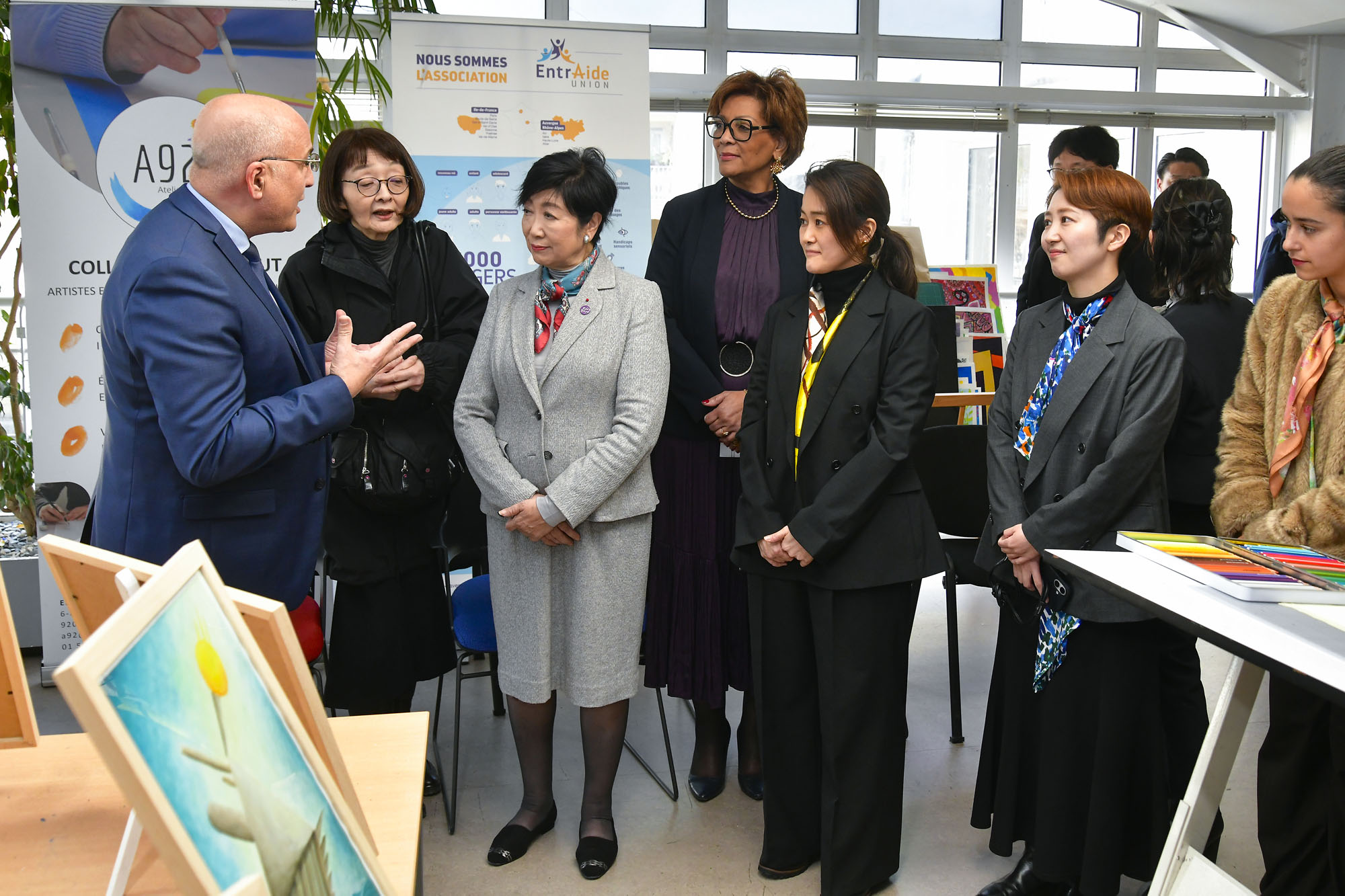 L’ESAT Camille Hermange de Nanterre a eu l’honneur d’accueillir Madame Yuriko KOIKE, Maire de Tokyo, en présence de Hakim KHELLAF, Directeur général de l’Entraide Union, le mercredi 4 février 2026, à l’occasion d’une visite officielle rendue possible grâce à la collaboration étroite et engagée avec notre client et partenaire HERALBONY.