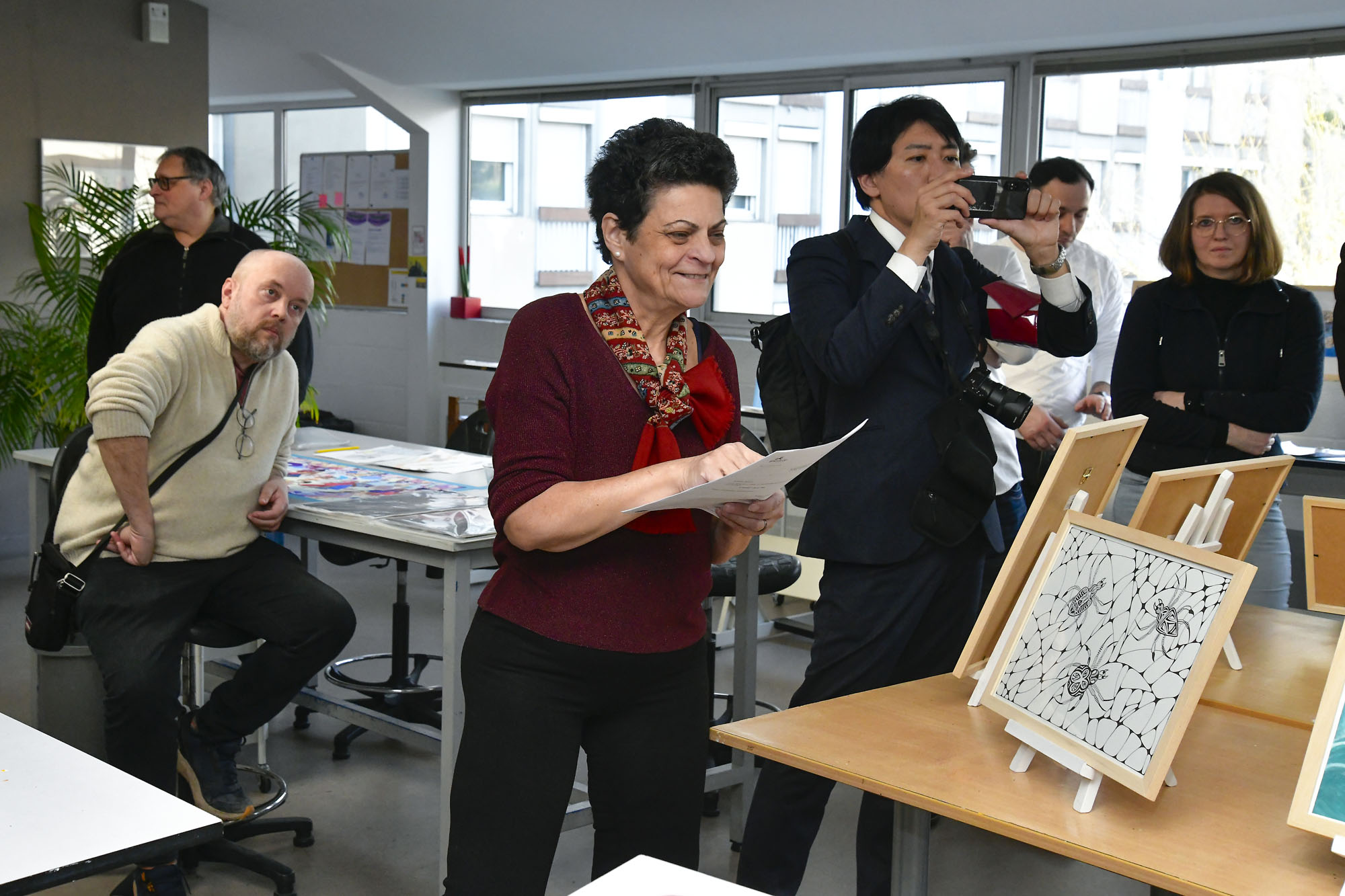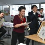 Accueillie avec enthousiasme, la Maire a pu découvrir l’univers singulier de l’atelier, guidée par deux travailleuses volontaires particulièrement investies. Chargées d’émotion mais fières d’être les ambassadrices de leur équipe, elles ont présenté avec authenticité leur quotidien, leurs techniques et la richesse de leurs créations. Leur témoignage, sincère et vibrant, a profondément touché l’ensemble des participants.