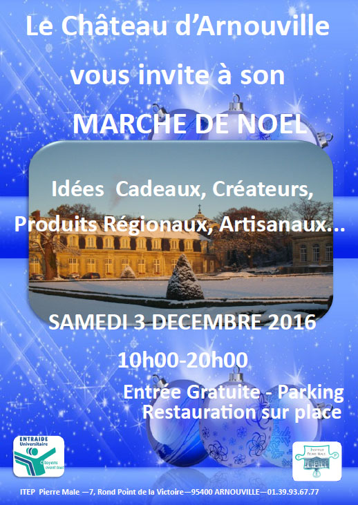 Dans un cadre historique, le Château d’Arnouville vous donne rendez-vous à son traditionnel Marché de Noël qui aura lieu, le samedi 3 décembre 2016 de 10h00 à 20h00.