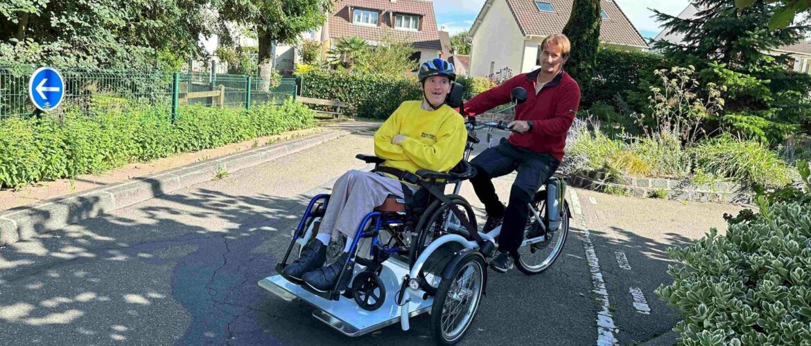 Les professionnels et résidents de la MAS Lucie Nouet disposent de vélos adaptés (tandem et autres) mais ceux-ci ne permettaient pas d’emmener un résident en fauteuil électrique pour des promenades aux alentours.