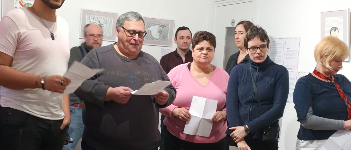 Après avoir exposé à la mairie du Pecq et à la MDPH de Nanterre, les artistes de l’ESAT Camille Hermange sont fiers d’exposer à la galerie parisienne Le Fil rouge. Le vernissage de leur exposition “Simul’art” a eu lieu vendredi 24 mars 2023.