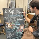 Il a commencé par réaliser les ardoises du jour, puis les affiches des menus spéciaux. C’est à ce moment-là que son talent pour le dessin s’est pleinement révélé.