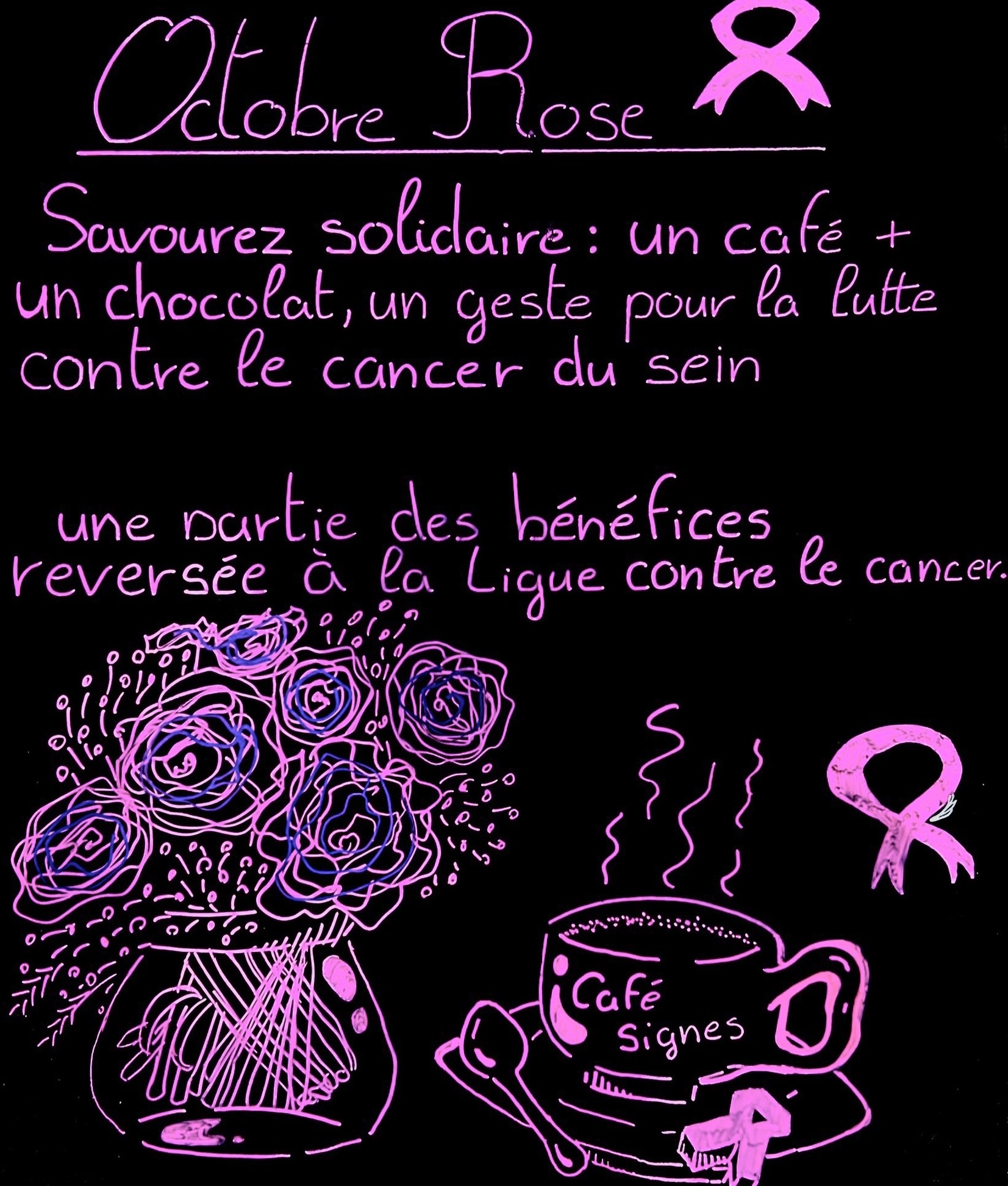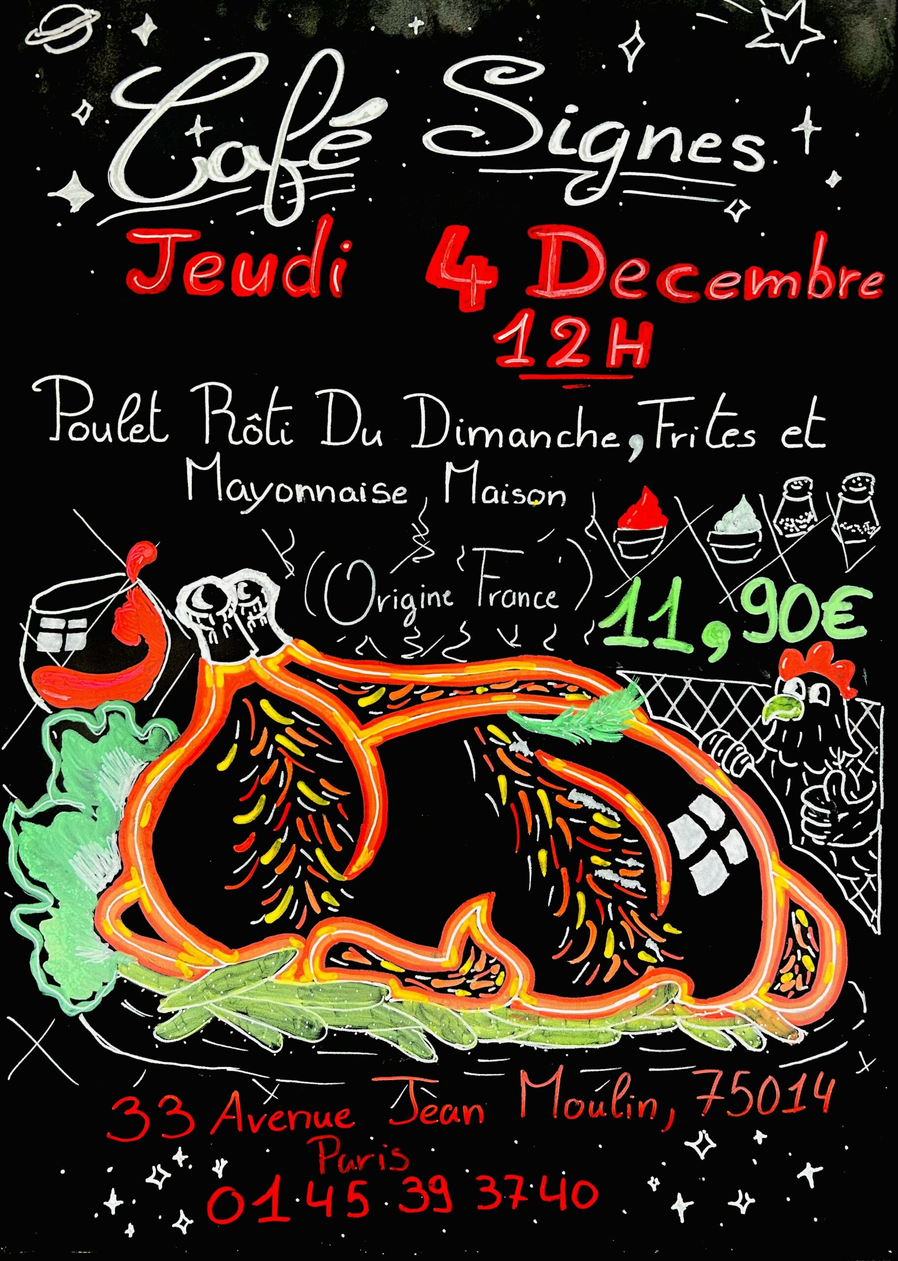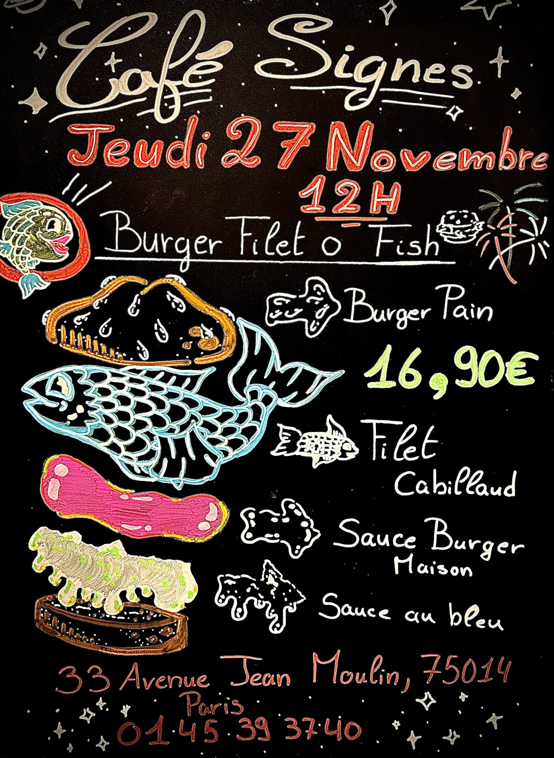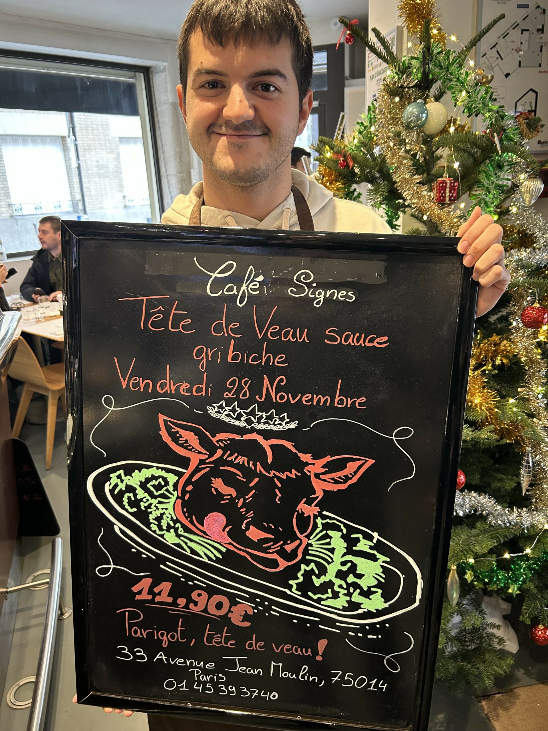 Il a commencé par réaliser les ardoises du jour, puis les affiches des menus spéciaux. C’est à ce moment-là que son talent pour le dessin s’est pleinement révélé.